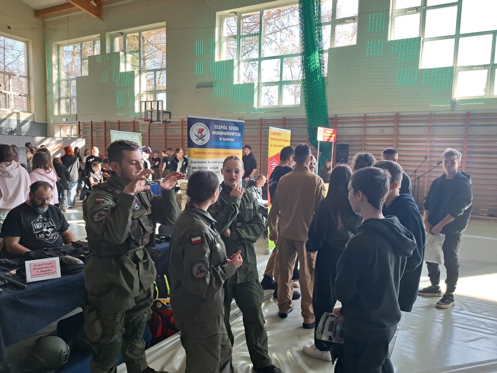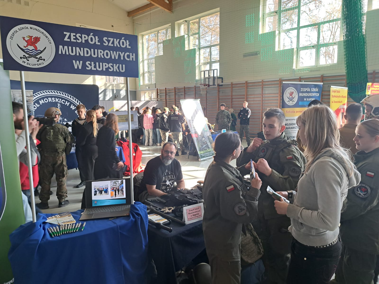 Odwiedzamy szkoły podstawowe z całego regionu! I w tym roku uczniowie Zespołu Szkół Mundurowych z dumą reprezentowali naszą szkołę na targach edukacyjnych dla ósmoklasistów w Kobylnicy!🎓