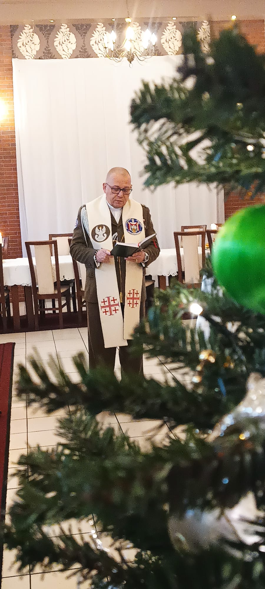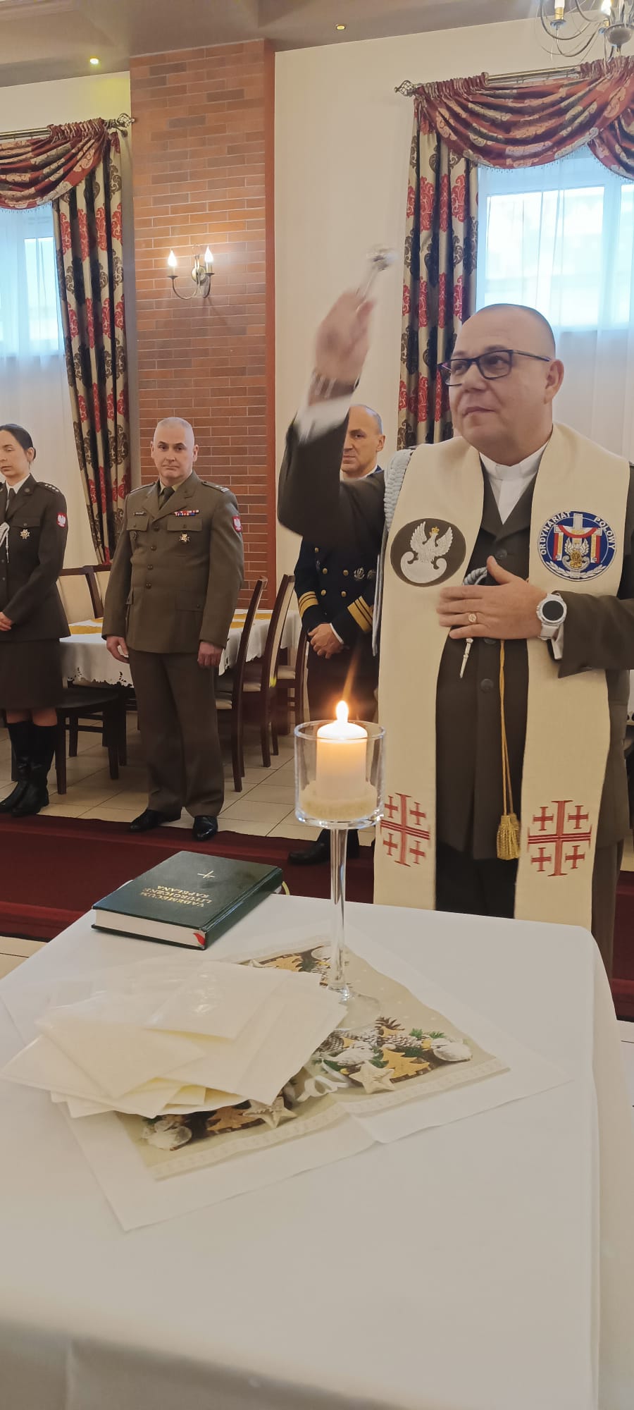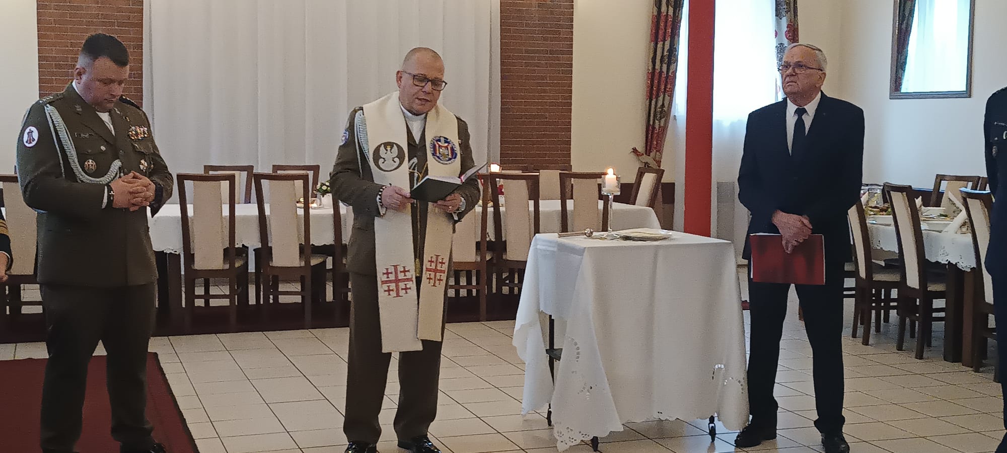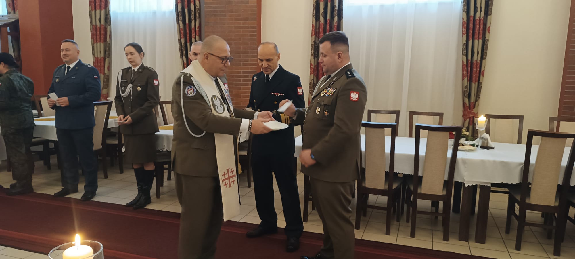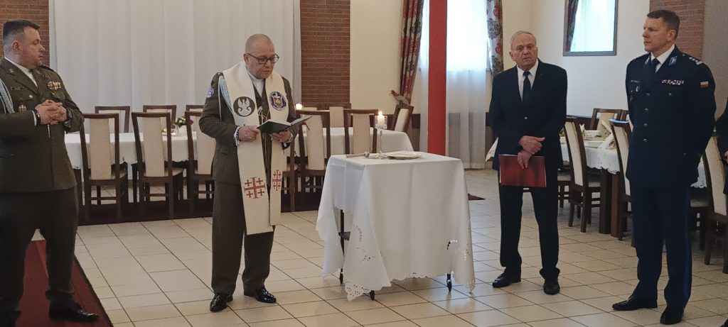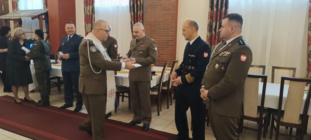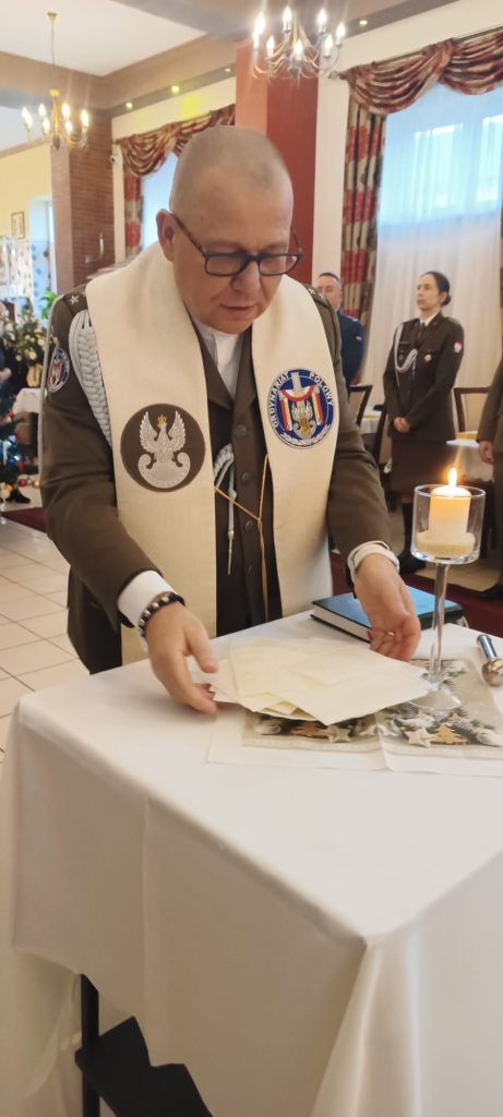 Kapelan Garnizonu Słupsk, ks. kpt. Arnold Zimnicki, składając życzenia podzielił się ze wszystkimi gośćmi opłatkiem.